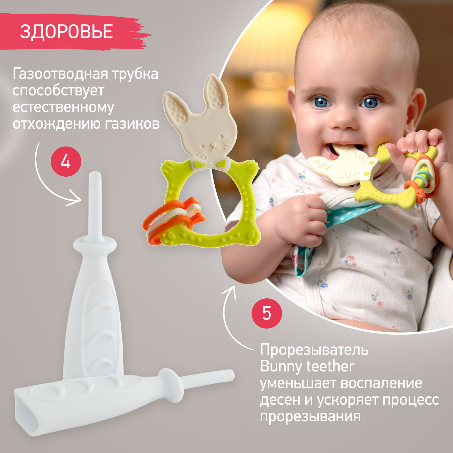 ⭐ Грызунок снимет неприятные ощущения от прорезывания первых зубов.