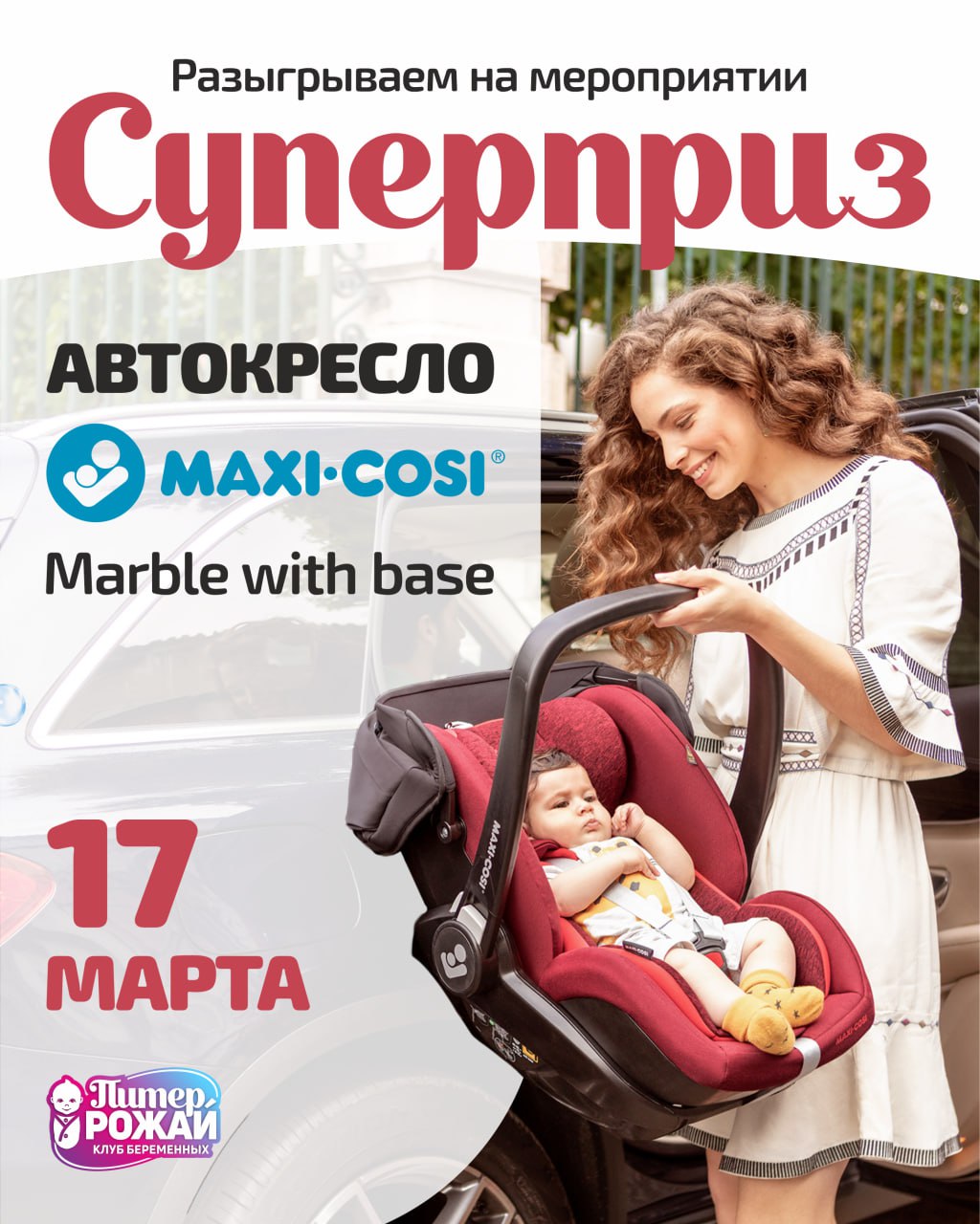 Представляем вам СУПЕРПРИЗ мероприятия - автокресло Marble with base компании Maxi-Cosi. Голландская компания Maxi-Cosi https://maxi-cosi.ru проектирует и производит безопасные, практичные и удобные детские автокресла и коляски.