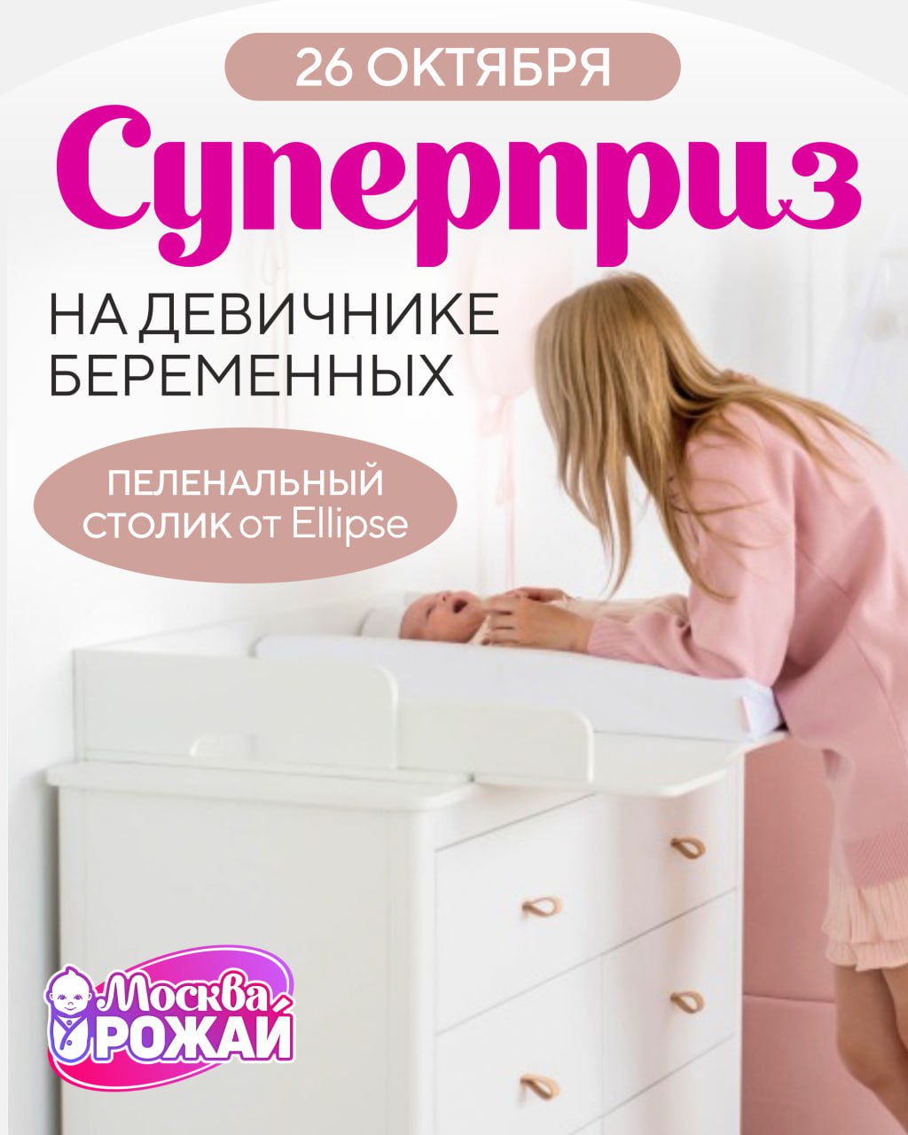 Приглашаем вас на  праздничный девичник беременных, где мы разыграем СУПЕРПРИЗ — Пеленальный столик от Ellipse.