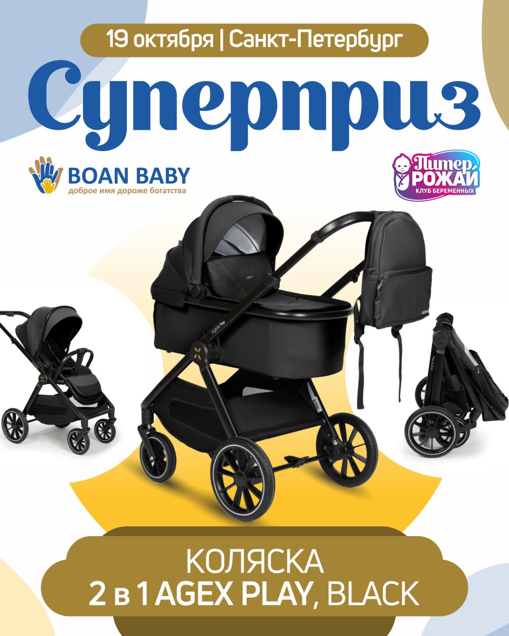 | Ждем вас в субботу на мега-празднике! | | Мы устраиваем настоящий цыганский праздник в честь Дня Рождения Президента Клуба! А также вас ждут лекции от ведущих специалистов о родах и заботе о будущем малыше, интересные мастер-классы, профессиональная фотосессия, подарки каждой участнице, маркет товаров для новорождённых и многое другое ✨ | | | | СУПЕРПРИЗЫ! | 19 октября две счастливицы смогут выйграть Коляску 2 в 1 Agex Play и пеленальный столик от Ellipse⚡ Что нужно сделать для участия в розыгрыше1️⃣ Прийти на мероприятие 19 октября2️⃣ Подписаться на наши соц. сети: Сообщество клуба беременных в ВК и Телеграм чат будущих мам Питер, Рожай!В конце мероприятия мы разыграем СУПЕРПРИЗЫ среди участниц двух сессий | | | | | | Подарок получит КАЖДАЯ! | Для участниц нашей встречи мы всегда формируем самый лучший и крупный призовой фонд! Будет подарено невероятное количество призов от многочисленных партнеров праздника: подгузники, детское питание, косметика для мамы и малыша, игрушки и многое другое. Самое главное, что индивидуальный подарок ждёт каждую посетительницу. С пустыми руками не уйдёт никто! ❤️ | | | | | | Тематика нашего осеннего мероприятия - Джипси. Джипси – стиль в одежде, отличающийся простотой и свободой образов в соответствии с особенностями цыганских нарядов. Вдохновляйтесь цыганскими мотивами и не ограничивайте свою фантазию! Используйте различные аксессуары, чтобы дополнить свой образ. Дресс-код — дополнительный элемент нашего праздника, и мы будем рады вам в любом случае. Однако все выполнившие это условие смогут принять участие в конкурсе на лучший наряд. | | | | Берите подруг с собой! | | Как провести наш Девичник беременных максимально весело? Взять с собой беременную подружку. А лучше - сразу компанию. К нам приходят даже целыми беременными чатами. Потому что вместе веселее! А ещё, если вы приводите беременную подругу, то у вас есть возможность получить подарок! На Девичнике на стойке регистрации объявить, что пришли с подругой. После этого вам выдадут номерок, по которому вы в тот же день получите подарок.